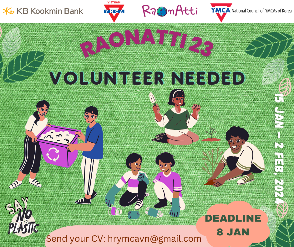 🔥 RAONATTI 23 is looking for Vietnamese volunteers to do an environmental project with YMCA Vietnam and Korean students with the goal of raising awareness of environmental protection through a number of activities such as exchanging trash for trees, planting trees. , picking up trash at the beach……